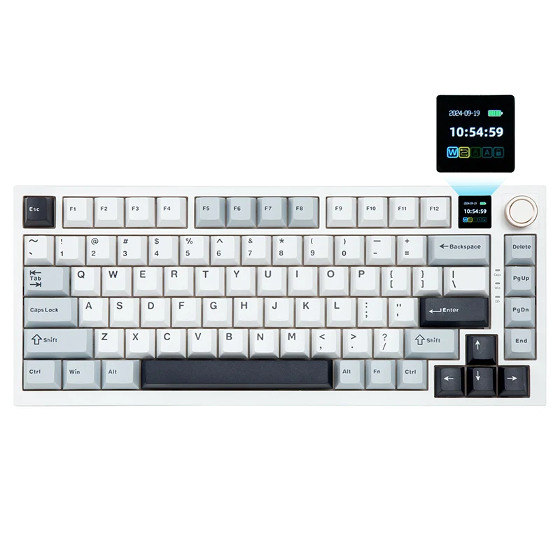 Élénk színű multimédiás képernyő - A DIY multimédia kijelző képernyője a billentyűzet jobb felső sarkában lehetővé teszi az idő, az akkumulátor hangerejének, a GIF -képnek, a kupaklárnak, a csatlakozási módnak, a Win/Mac rendszernek, a háttérvilágítás fényességének/sebességének, az RGB módjának/színének, a hangerőnek és másjának megjelenítését.