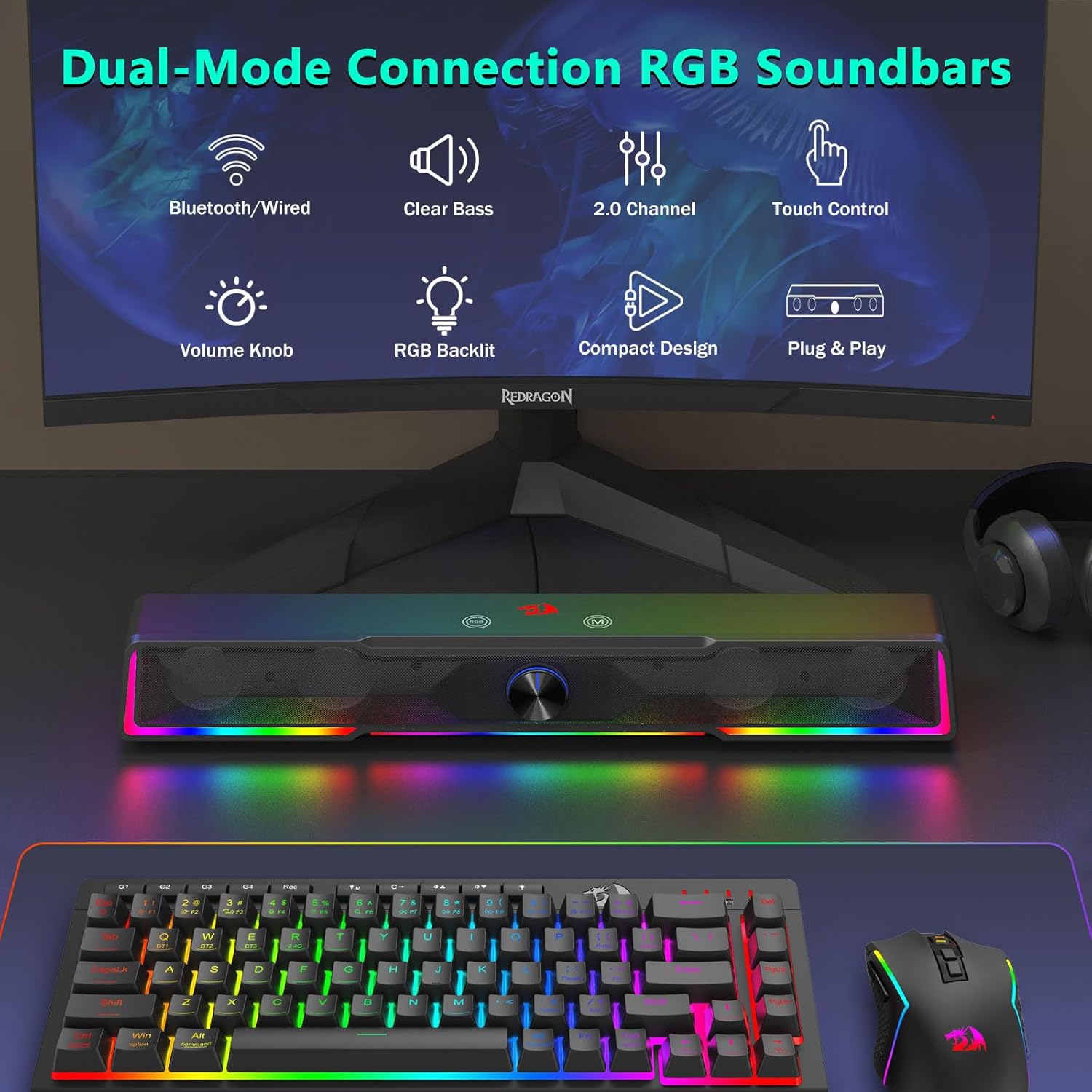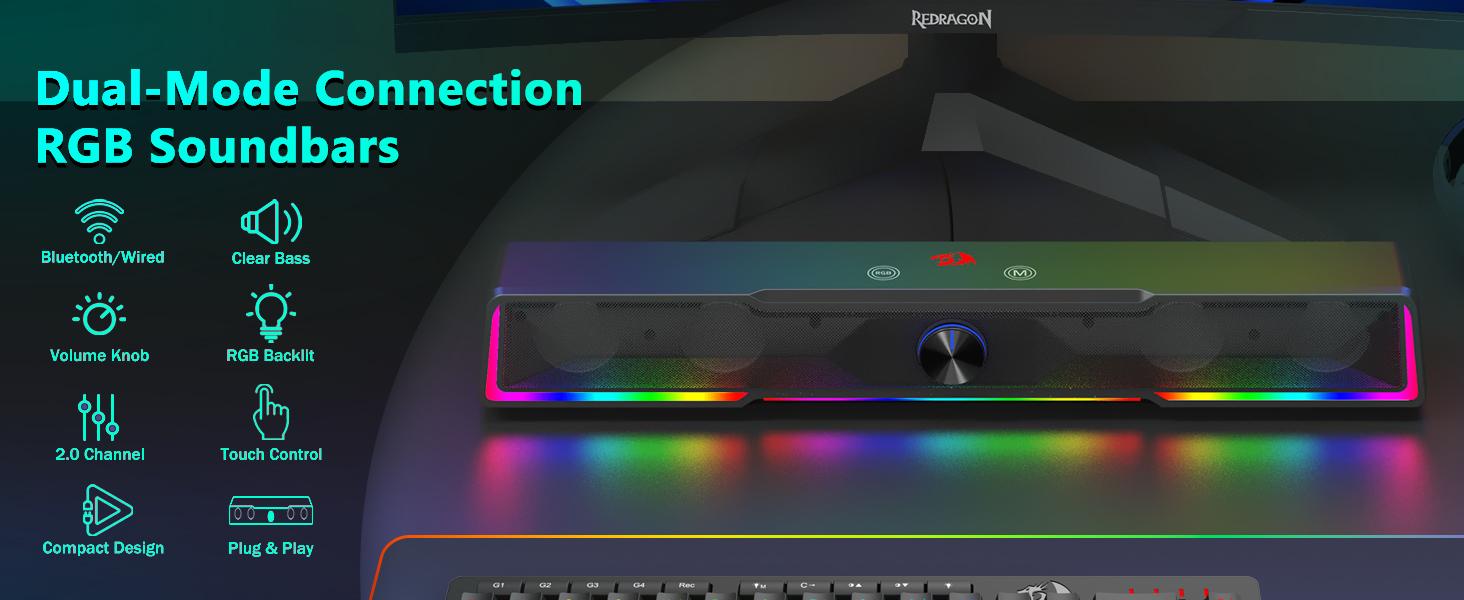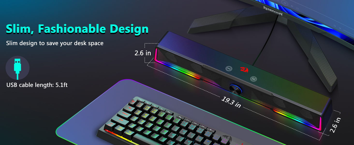Helytakarékos Soundbar kialakítás Ellentétben a hagyományos hangszórókkal, amelyek a monitor mindkét oldalán nagy területeket foglalnak el, a fekete GS516 Bluetooth/USB vezetékes csatlakozású Soundbar hangerőszabályzó számítógép hangszóró vékony hangsugárzó szerkezettel rendelkezik, amely kényelmesen elfér a legtöbb számítógép képernyője alatt. Ez a kompakt kialakítás segít fenntartani a tiszta és rendezett asztali környezetet, miközben gazdag és magával ragadó hangzást biztosít.