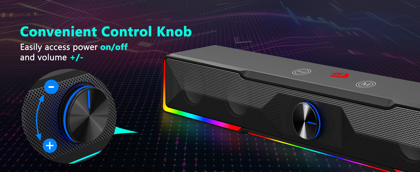 Sima hangerőszabályzó A beépített hangerőszabályzó a Black GS516 Bluetooth/USB vezetékes kapcsolattal rendelkező Soundbar hangerőszabályzó számítógép hangszórójának egyik legkényelmesebb funkciója. A hangerőszintek rendszerbeállításokkal történő módosítása helyett a felhasználók egyszerűen elforgathatják a gombot a hangerő azonnali növeléséhez vagy csökkentéséhez. Ez a tapintható vezérlés javítja a használhatóságot játékmenetek, zenelejátszás és videokonferencia során.