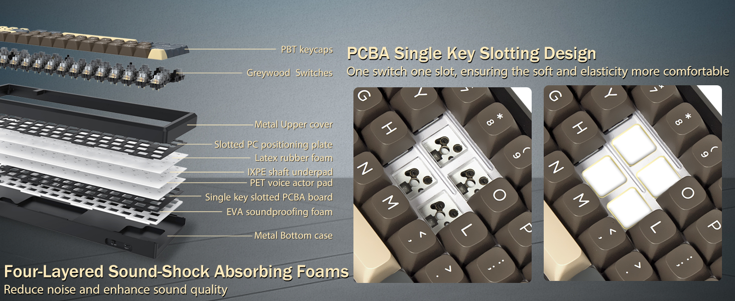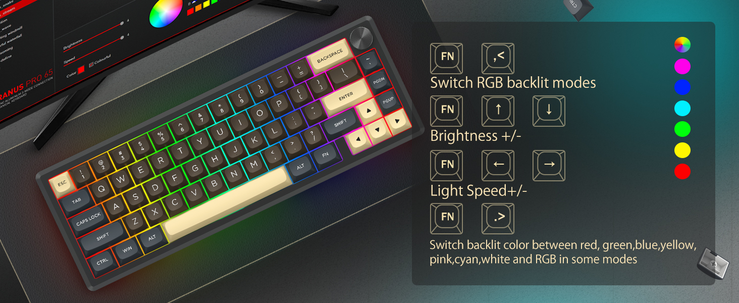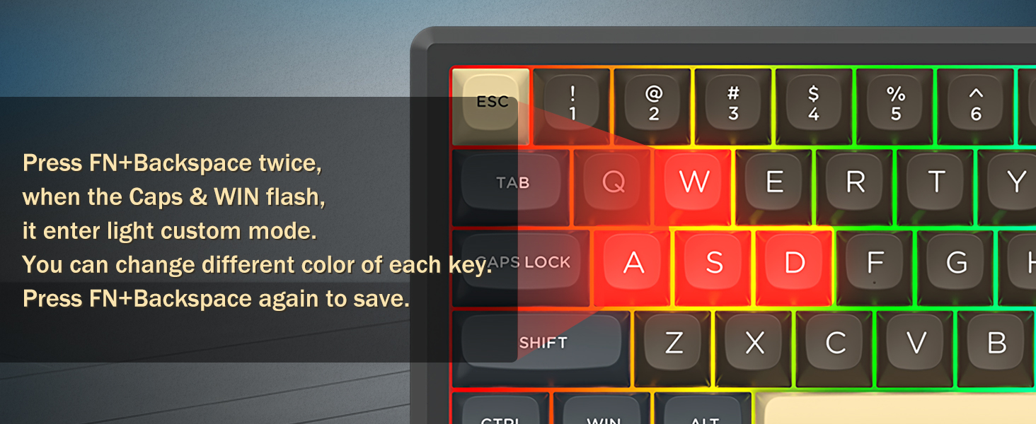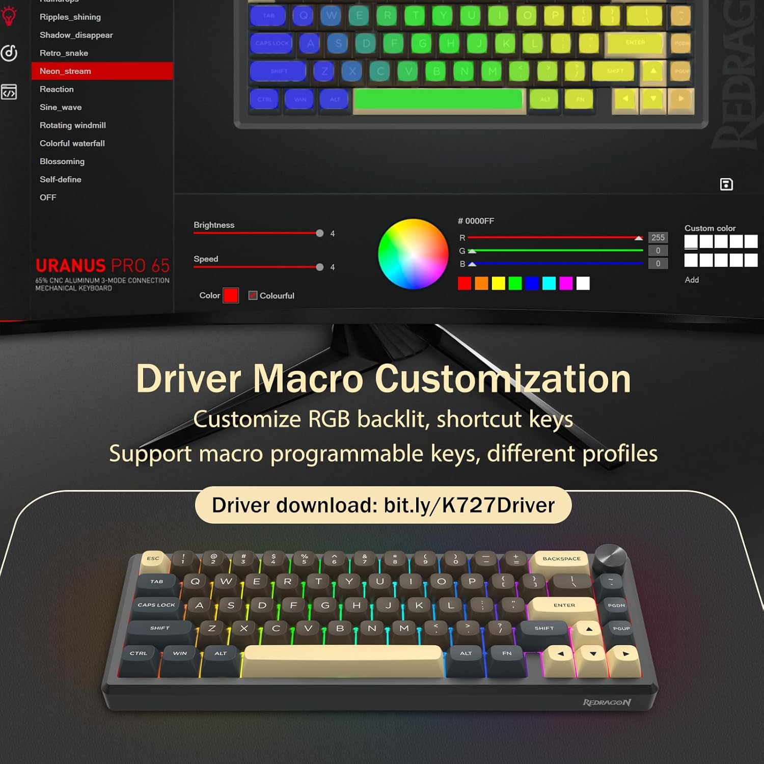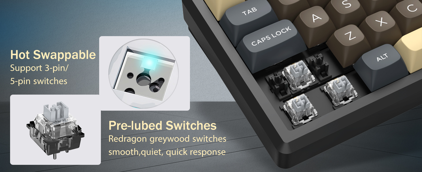 60%-os elrendezésével ez a billentyűzet eltávolítja a nem alapvető billentyűket, miközben a billentyűkombinációk révén megtartja az alapvető funkciókat. Ez a kialakítás segít csökkenteni az asztali zsúfoltságot, és több helyet biztosít az egér mozgásának, így alkalmas játék- és termelékenységi környezetre egyaránt.