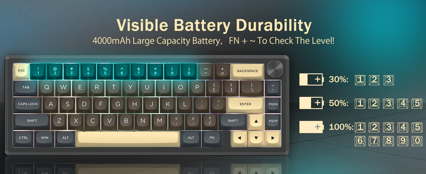 V: A 60%-os elrendezés csökkenti a billentyűzet méretét a nem alapvető billentyűk eltávolításával. Ez több helyet biztosít az asztalon, és javítja a hordozhatóságot, miközben lehetővé teszi az összes funkció elérését a billentyűkombinációkkal.