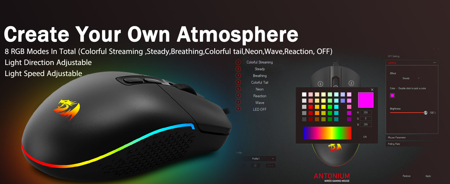 Bármely gomb átrendelhető- Kapcsolja be a háttérvilágítást, és öljön meg néhányat a játék csataterén. A felkapott, dinamikus RGB háttérvilágítású hangulat soha nem hagy cserben, amikor a játékteret díszíti, jobb lenne, ha más Redragon kiegészítőkkel is fel van szerelve világítás.