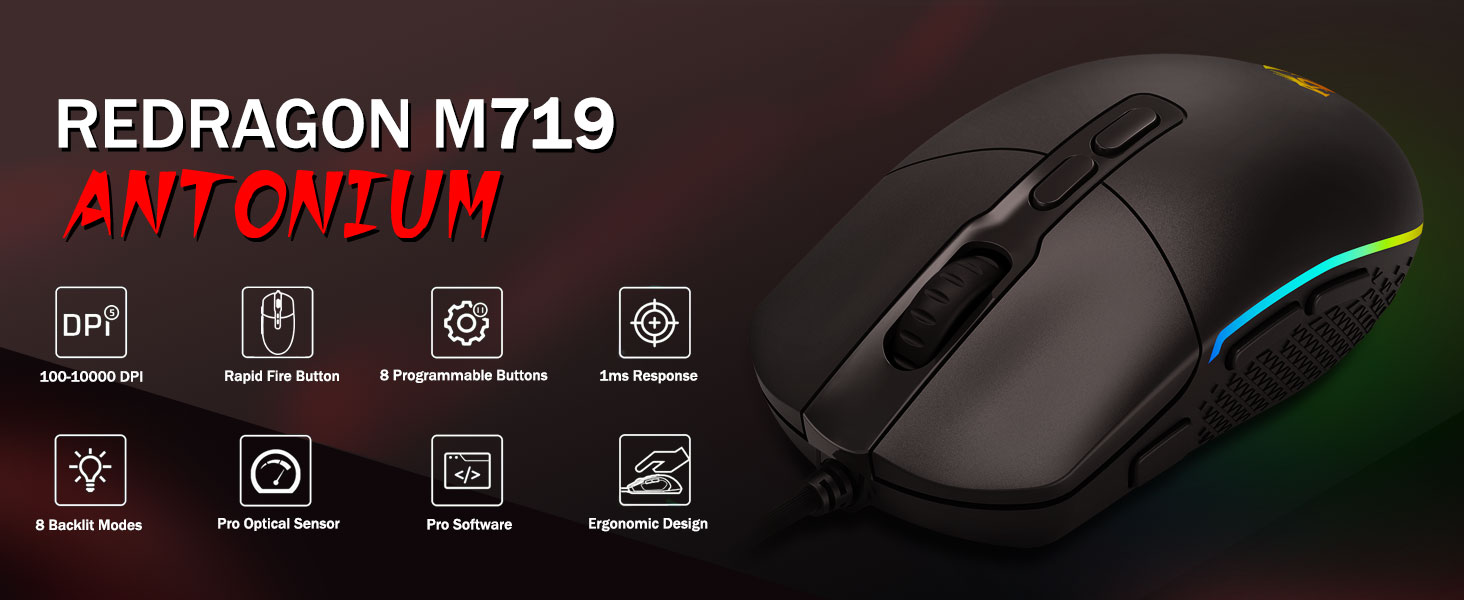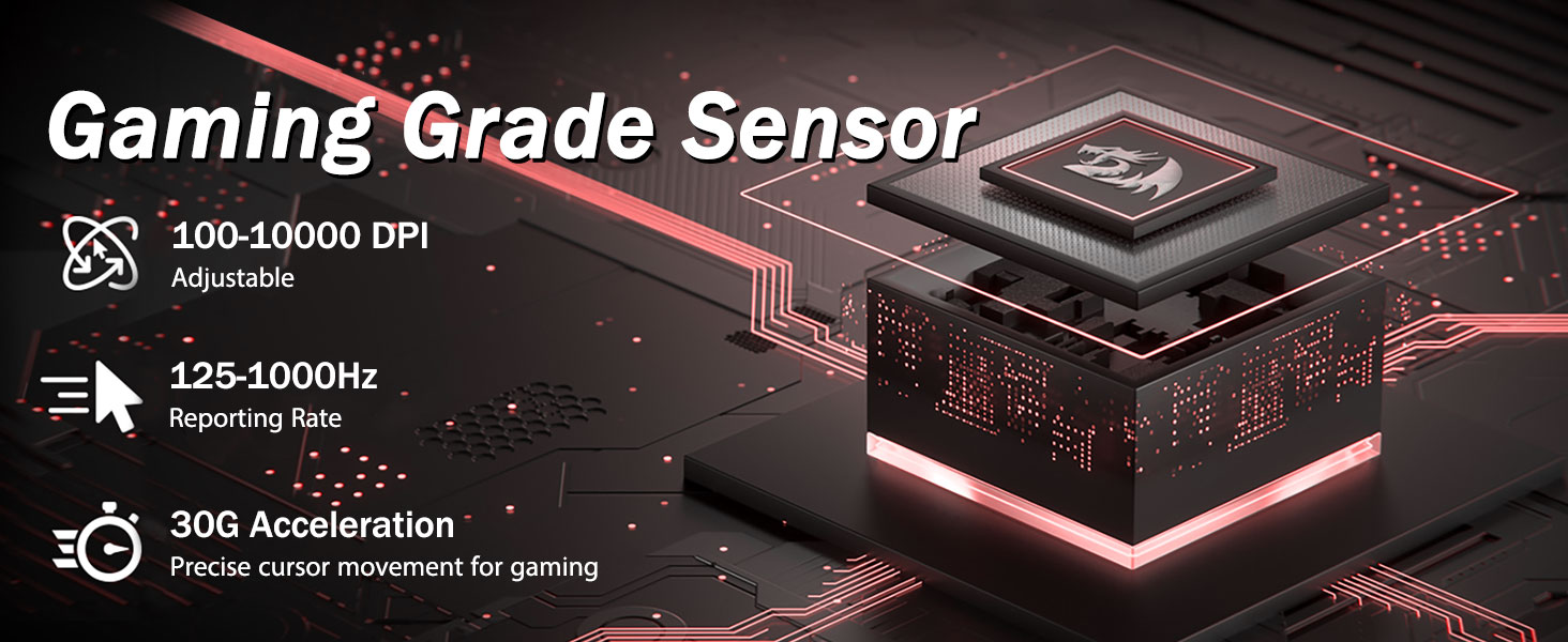 5 állítható DPI szint és 4 lehívási arány- Az M719 egeret 5 elérhető DPI szinttel tervezték: DPI 400/800/1600/2400/4000. könnyű váltani a különböző játékigények között. A DPI szabadon állítható ±100-al 100-tól 10000-ig szoftveren keresztül, hogy megfeleljen minden igényének. 4 lekérdezési frekvencia állítható: 125Hz/250Hz/500Hz/1000Hz, a magas lekérdezési arány egyenletes és gyors mozgást biztosít.