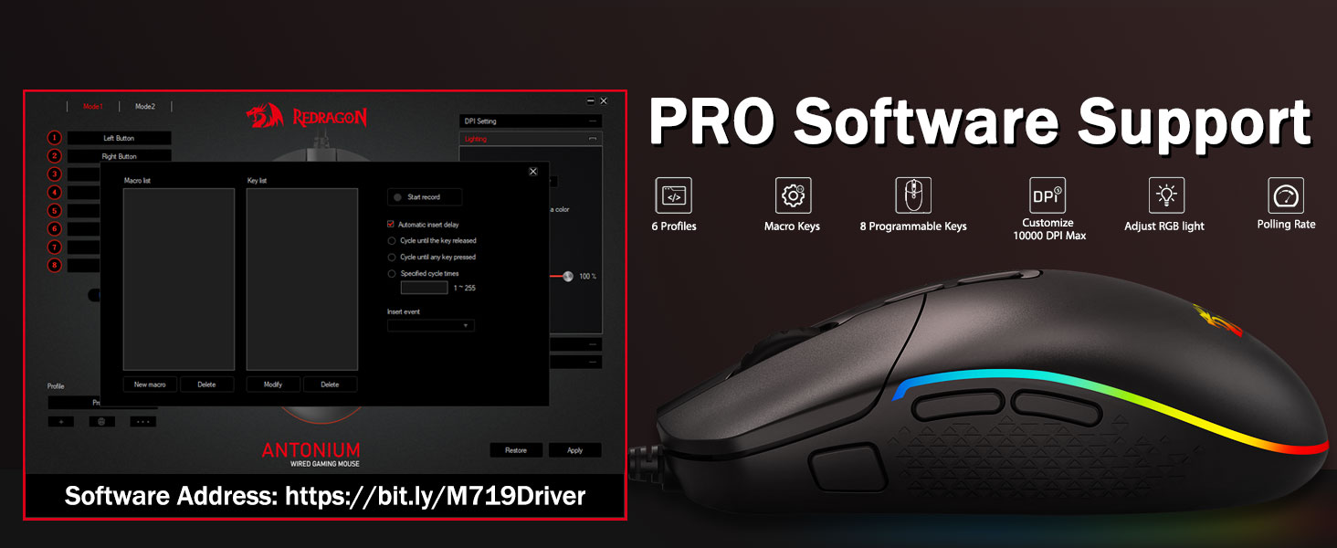 Szoftver link: bit.ly/M719RGBDriver