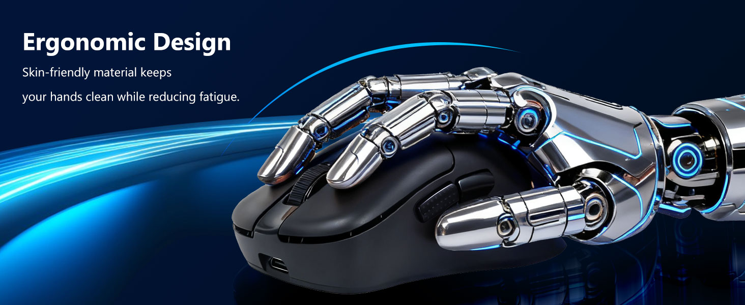 Az egér úgy van kialakítva, hogy támogassa a kéz természetes pozicionálását, és alkalmazkodik a különböző fogási stílusokhoz. Ez segít csökkenteni a fáradtságot hosszabb használat során.