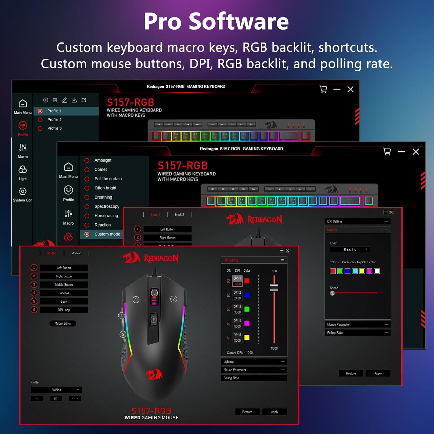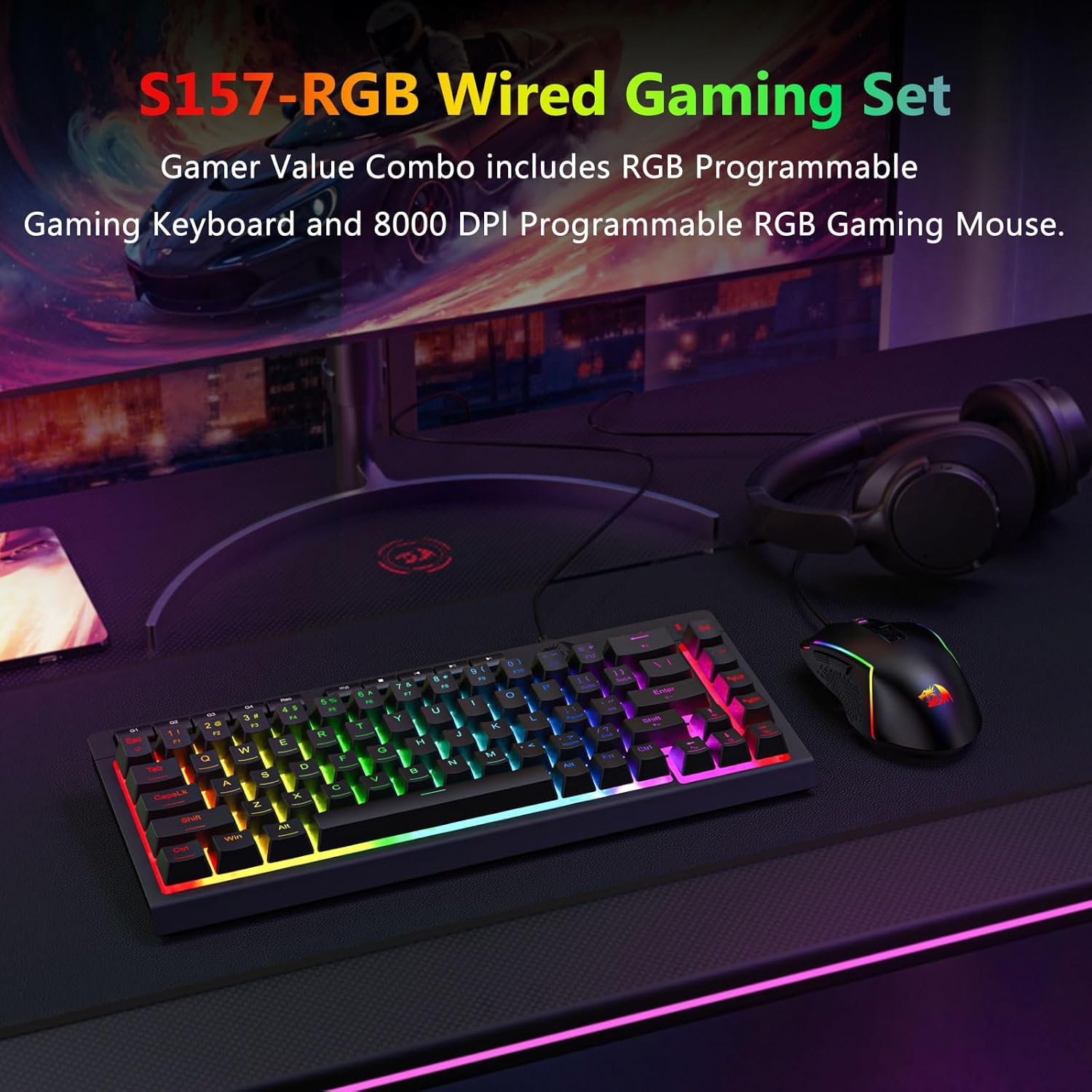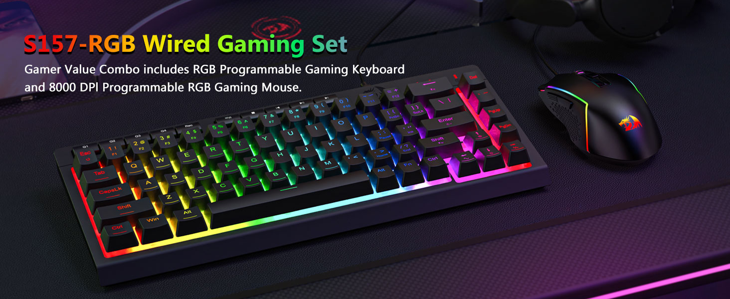 A Black S157 RGB háttérvilágítású vezetékes játékbillentyűzet és -egér kombináció egyenletes teljesítményt biztosít a különböző helyzetekben. A billentyűzet támogatja a pontos billentyűleütéseket, míg az egér megbízható nyomkövetést biztosít a navigációhoz és a játékhoz.
