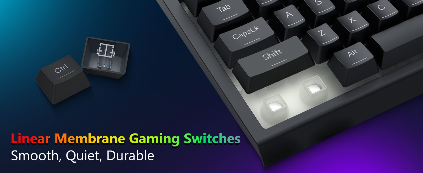 A gombokat úgy tervezték, hogy egyenletes visszajelzést és kiegyensúlyozott működtetést biztosítsanak. Ez biztosítja a pontos gépelést és a megbízható bevitelt játék vagy irodai használat során.