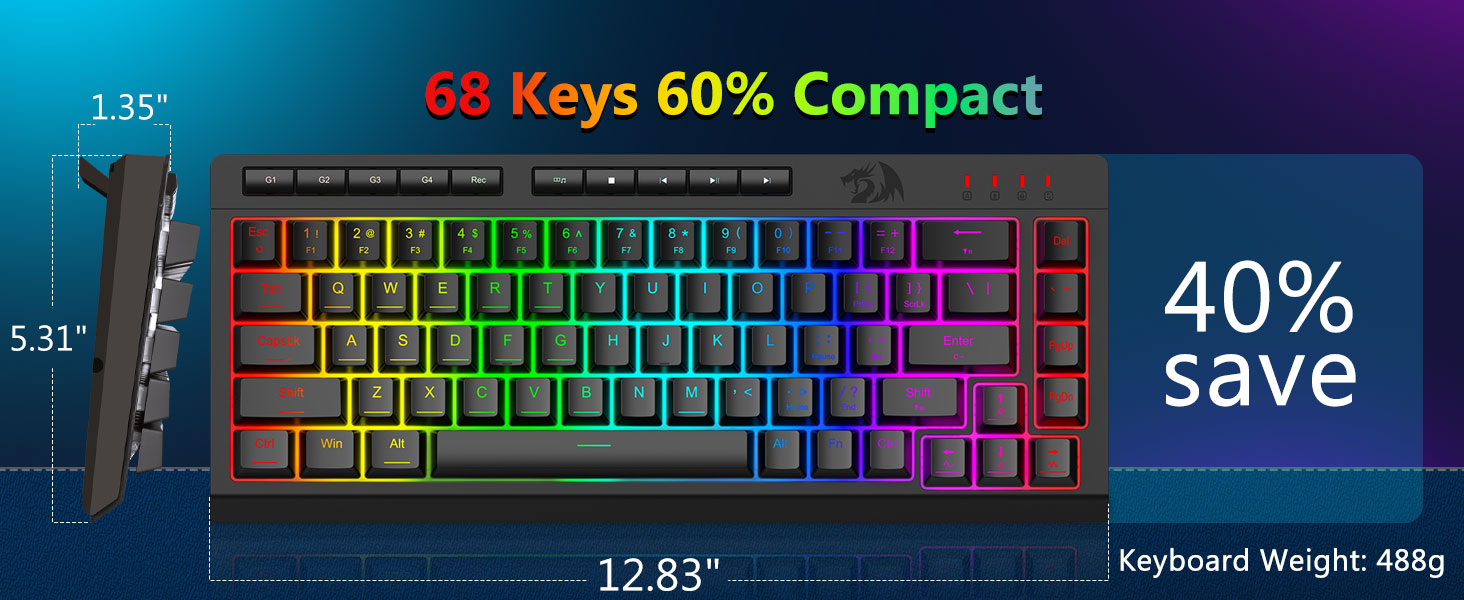 Az integrált RGB világítás javítja a kulcsok láthatóságát félhomályos környezetben. A világítási rendszer többféle módot kínál, lehetővé téve a felhasználók számára, hogy saját igényeik szerint állítsák be a fényerőt és az effektusokat.