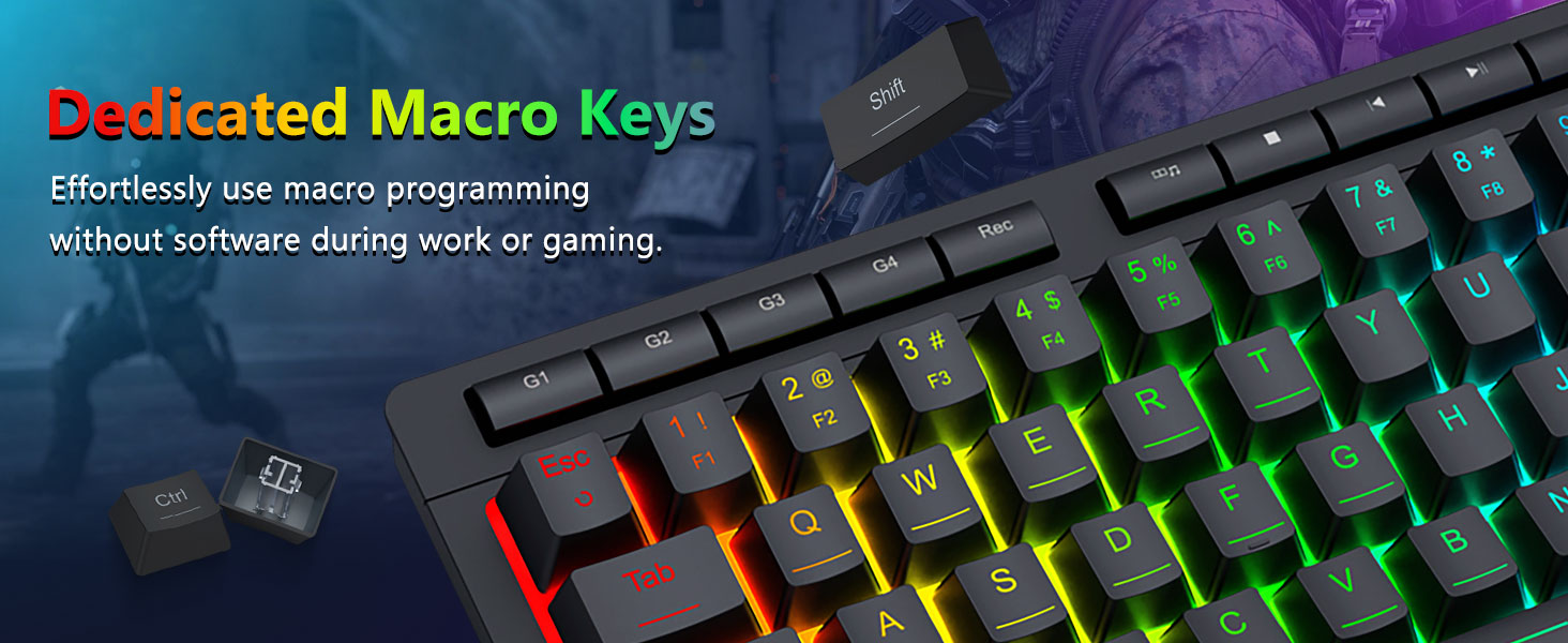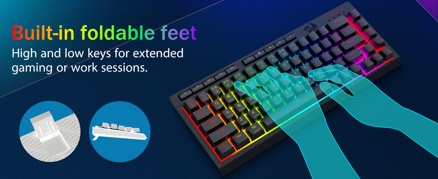 A kulcssapkákat tartósságra és egyenletes textúrára tervezték, így hosszú ideig segítik a kényelmet. Az RGB világítás egyenletesen oszlik el, így a figyelemelvonás nélkül javítja a láthatóságot.