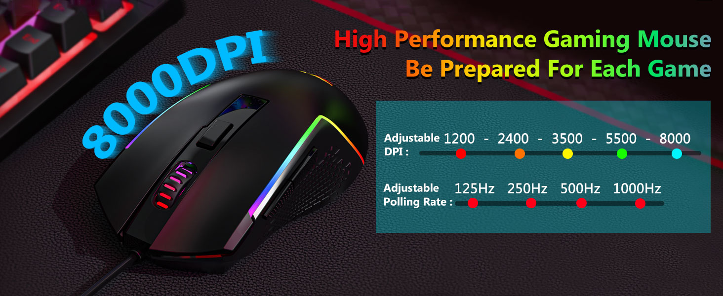 A mellékelt egér optikai érzékelővel van felszerelve, amely támogatja a stabil követést és a sima kurzormozgást. Az állítható DPI-beállítások lehetővé teszik a felhasználók számára, hogy az érzékenységet a különböző feladatokhoz igazítsák.