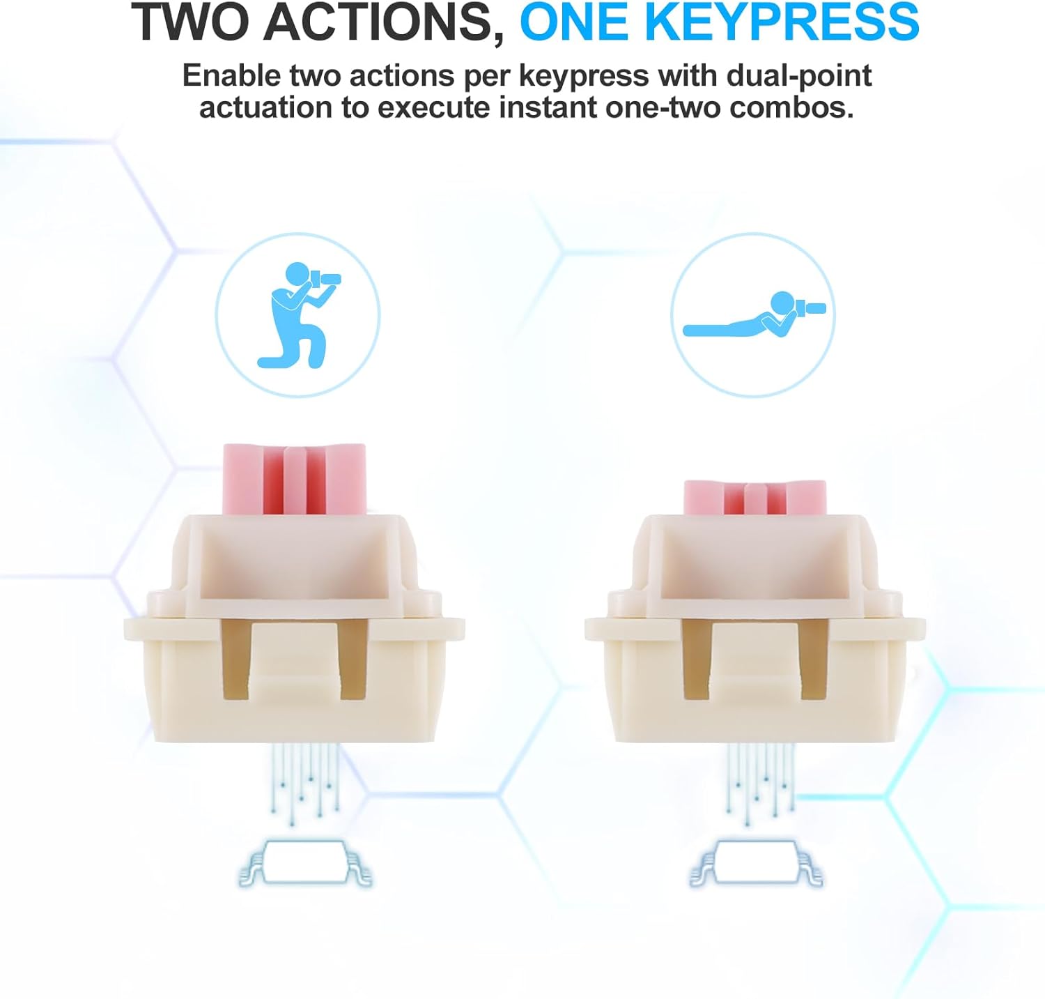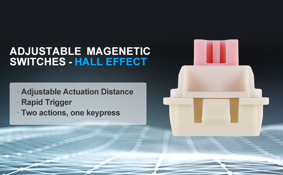 A mágneses kapcsolók Hall-effektus érzékelőket használnak a billentyű mozgásának érzékelésére, állítható működtetési pontokat és következetes bemeneti felismerést biztosítva. A hagyományos mechanikus kapcsolókkal ellentétben ez a technológia csökkenti a fizikai kopást és biztosítja a hosszú távú stabilitást.
