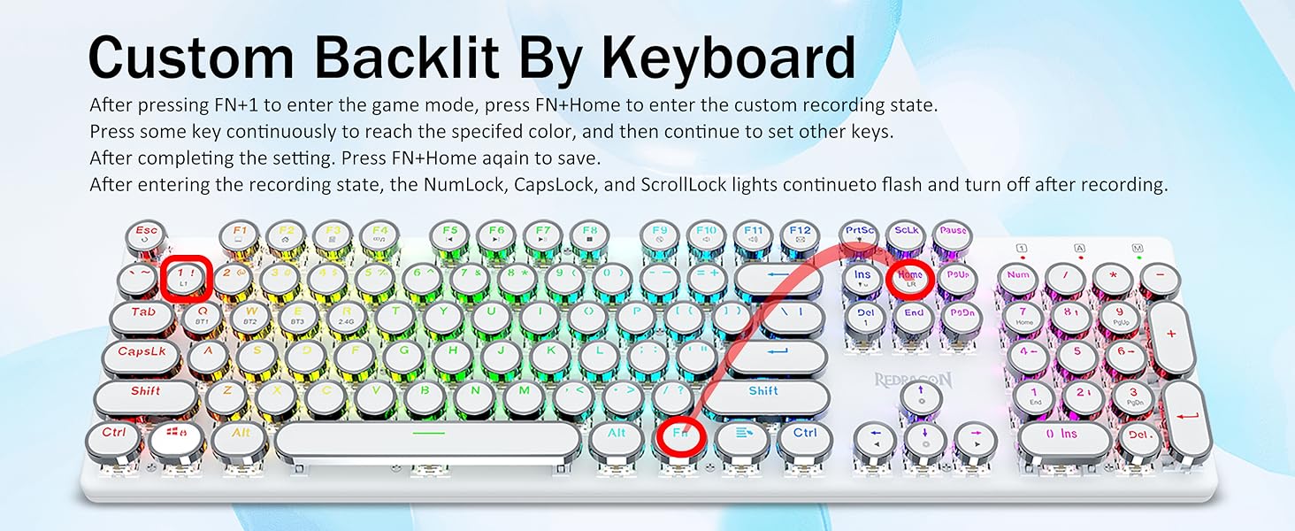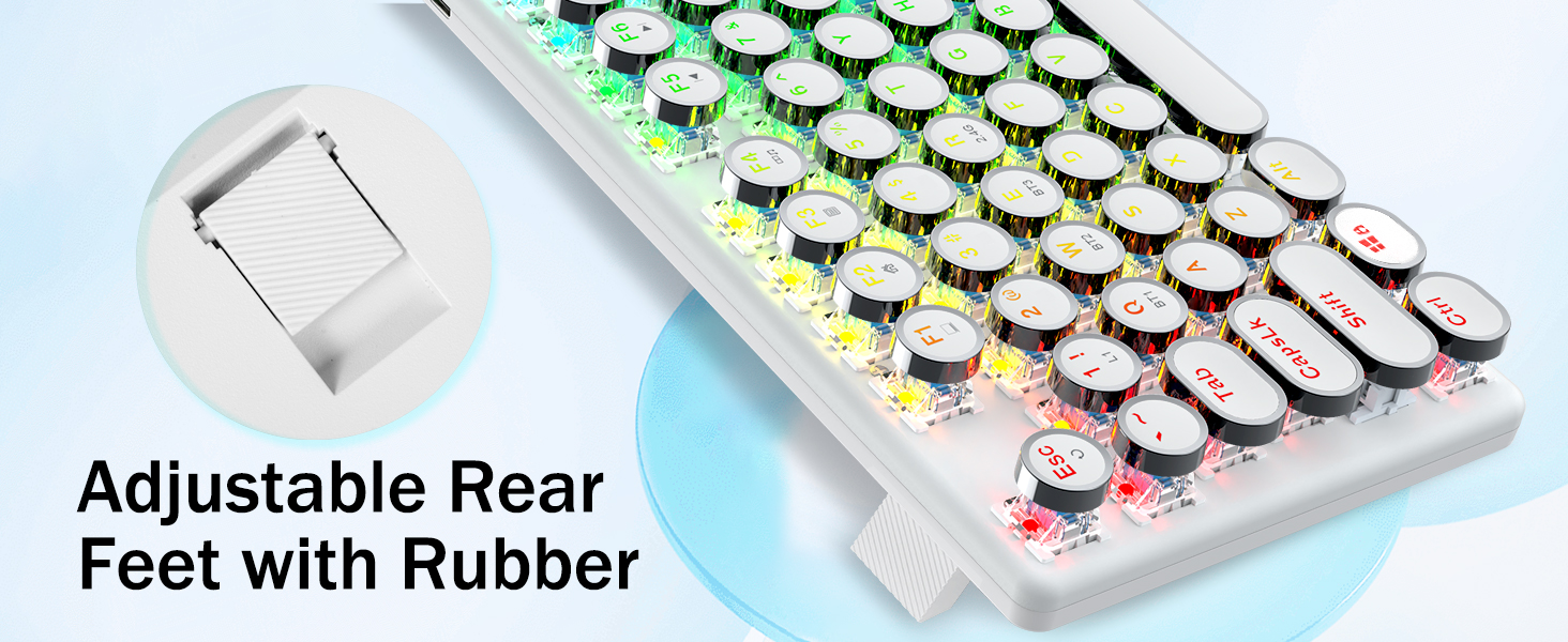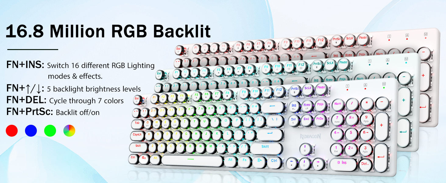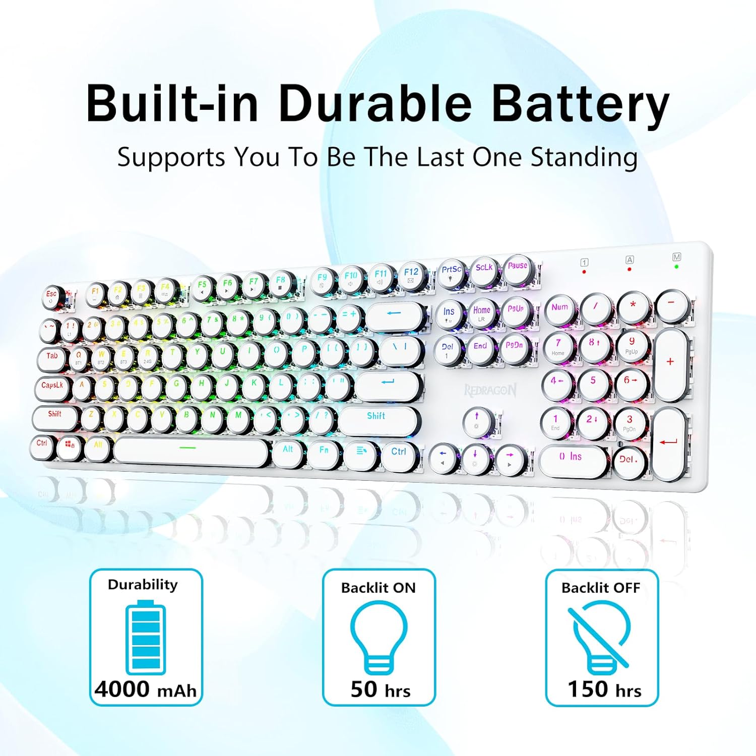 𝗥𝗲𝘁𝗿𝗼 𝗧𝘆𝗽𝗲𝘄𝗿𝗶𝘁𝗲𝗿 𝗦𝘁𝘆𝗹𝗲 𝘄𝗶 𝗠𝗲𝗰𝗵𝗮𝗻𝗶𝗰𝗮𝗹 𝗞𝗲𝘆𝘀- A Redragon Mechanical kék kapcsolók közepes ellenállást, hallható kattanási hangot és tapintható visszajelzést kínálnak, érzékeny és precíz játékkörnyezetet és teljesítményt biztosítanak. A vintage steampunk billentyűzet kerek billentyűsapkái úgy néznek ki, mint egy klasszikus írógép, kényelmes gépelési érzést és stabil kattintási tapintást biztosítanak.